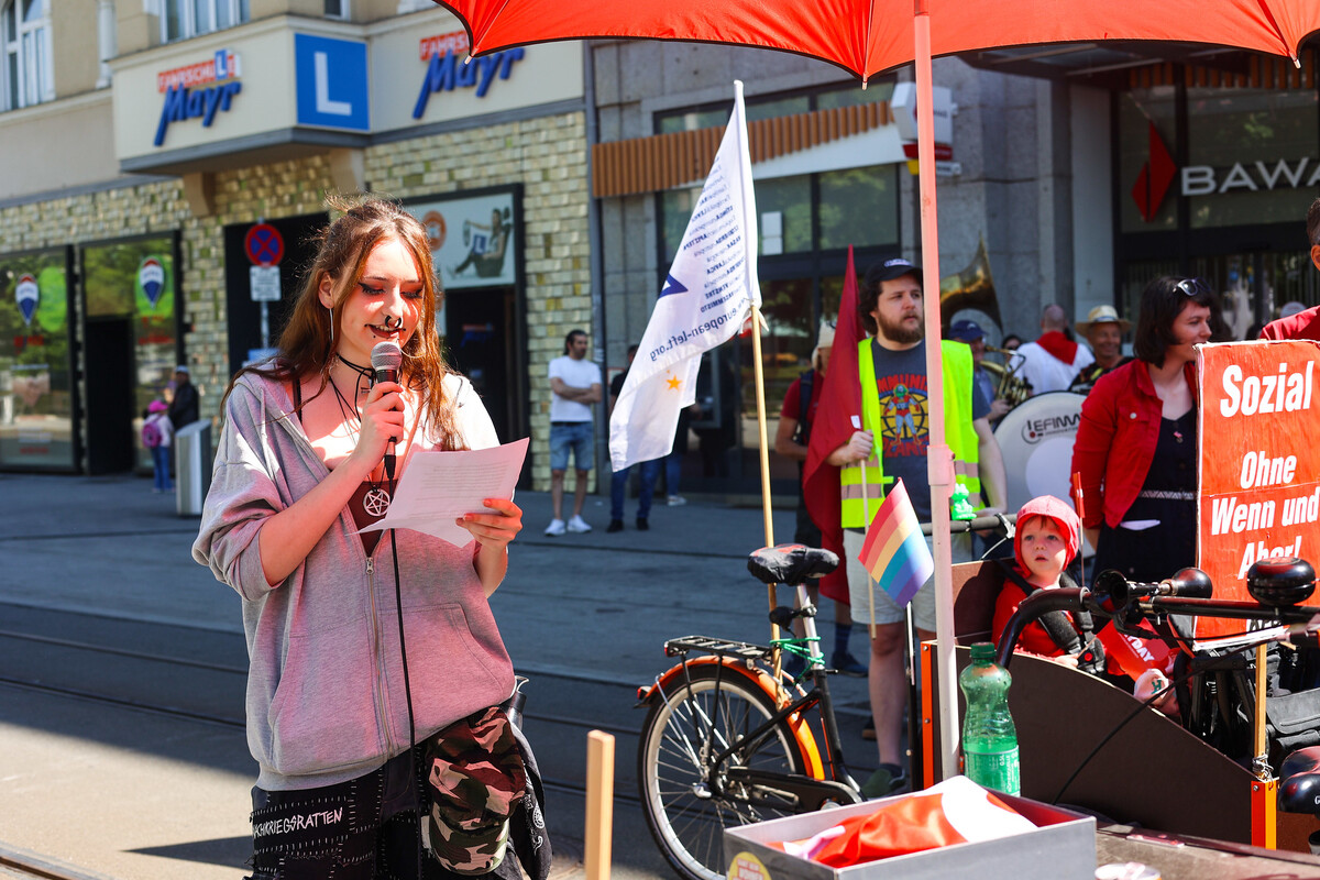- Seien wir mutig: Kämpfen wir für eine Gesellschaftsordnung, wo die Bedürfnisse der Vielen vor den Profitinteressen der Wenigen stehen!