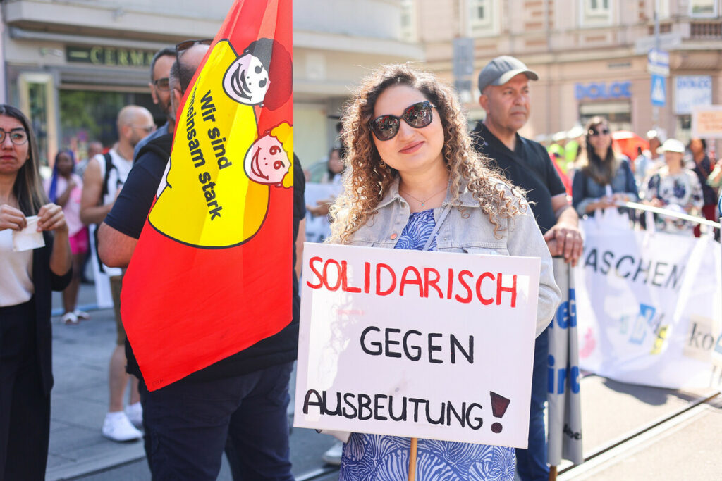 Gleichzeitig erleben wir – nicht zuletzt angesichts weltweiter Wahlergebnisse – eine beunruhigende Realität: Rechte Parteien, mächtige weiße Männer und Faschisten die durch Angst, Spaltung und Falschinformationen eine feindselige Stimmung erzeugen. Ihre Antworten mögen sich unterscheiden, doch sie eint eines: Sie treiben uns auseinander. Sie hetzen Menschen gegeneinander auf, entmenschlichen und verteidigen bedingungslos das Kapital – auch in Europa, mit offener Gewalt, Massensterben im Mittelmeer, Aufrüstung und Krieg.