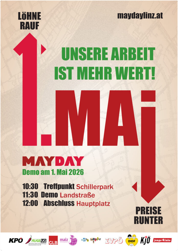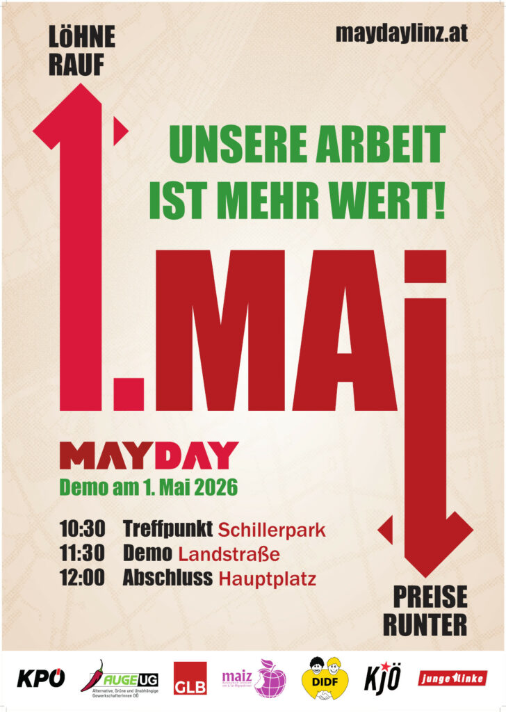 Aufruf zur 1. Mai-Demonstration – Mayday 2026 in Linz